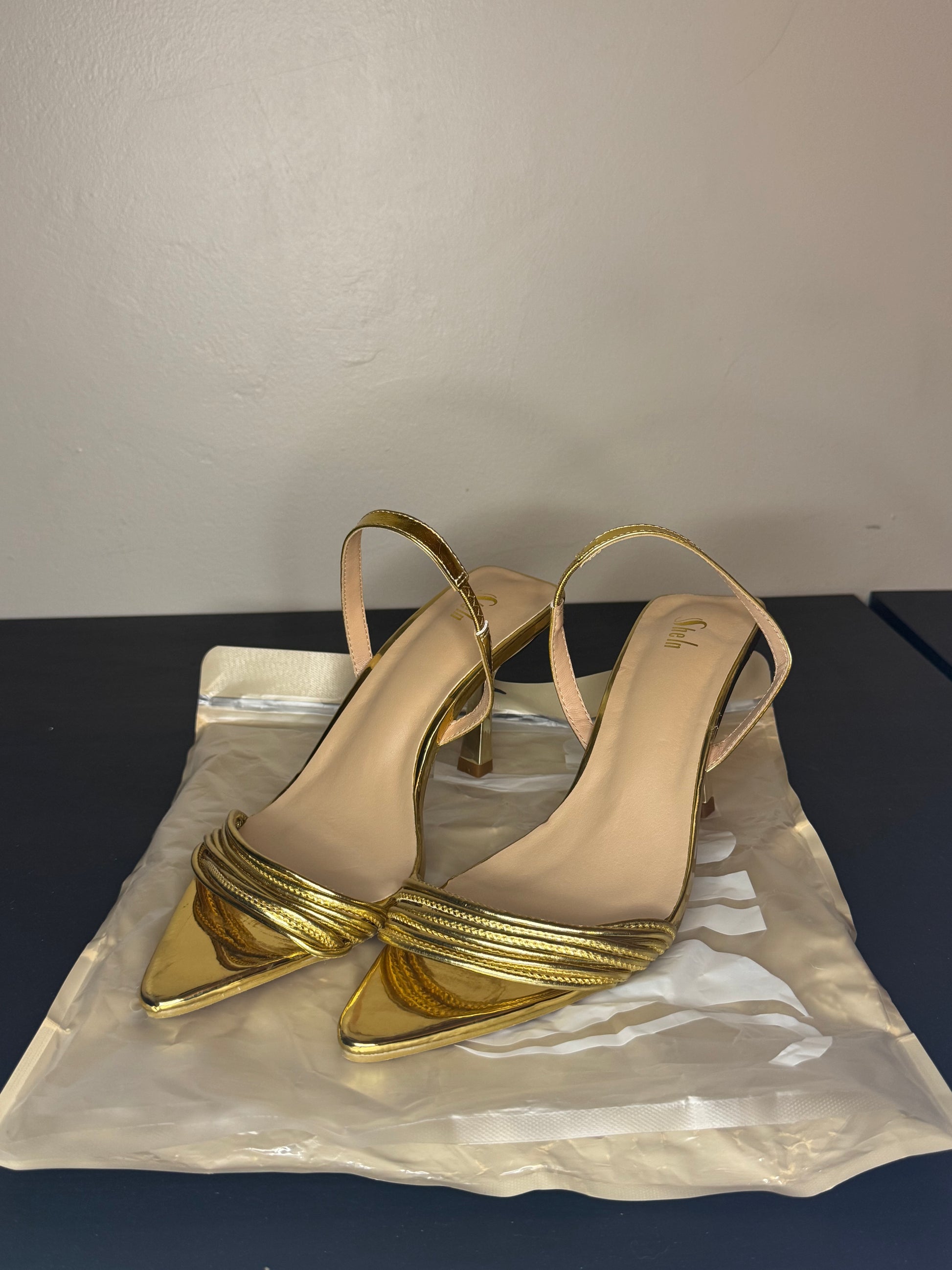Gold Sling Back Kitten Heel