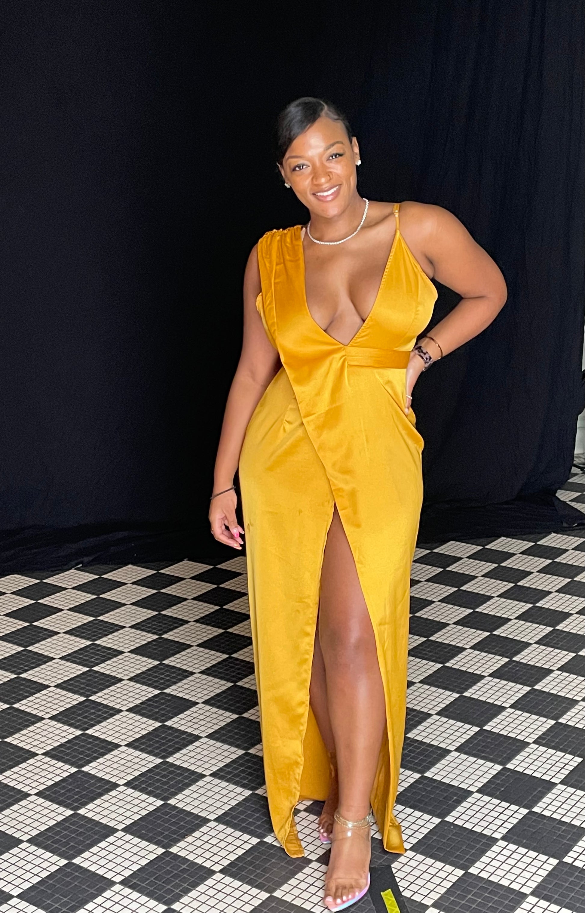 Worn to a wedding. I have wide hips soo the slit had to be held closed from time to time🥴